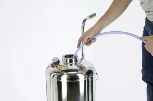 Wszechstronne urządzenie ciśnieniowe Kerbl ze stali nierdzewnej do bielenia (mleko wapienne), dezynfekcji i pielęgnacji. Niska mgła, łatwe czyszczenie, praca z kompresorem lub bez stałego przyłącza. Dysze w zestawie.