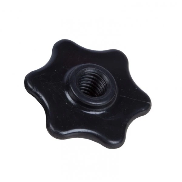 Materiał: wysokiej jakości tworzywo sztuczne odporne na typowe detergenty i wilgoć; forma „gwiazdki” dla pewnego chwytu; precyzyjny gwint dla płynnego dokręcania; łatwe utrzymanie w czystości; przeznaczenie: nakrętka pokrywy konwi w układach dojowych.