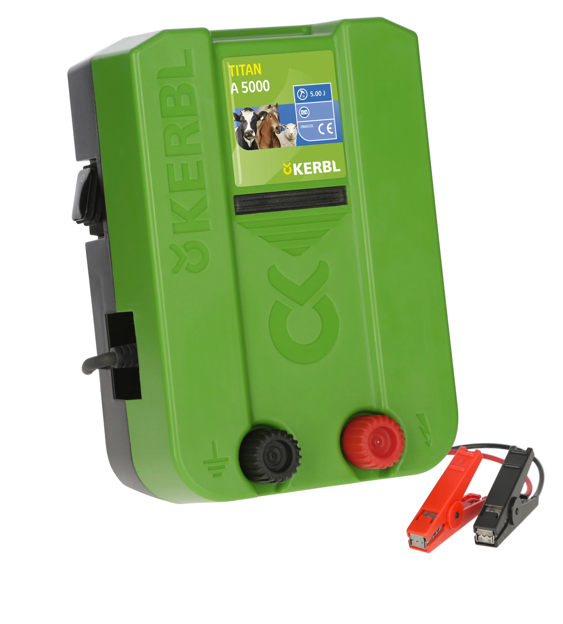 Kerbl TITAN A5000 to bardzo mocny elektryzator akumulatorowy 12V o energii 5,0J (3,3J wyjściowe), przeznaczony do długich ogrodzeń oraz pracy przy porośnięciu. Idealny dla bydła, owiec, kóz i ochrony przed dziką zwierzyną.