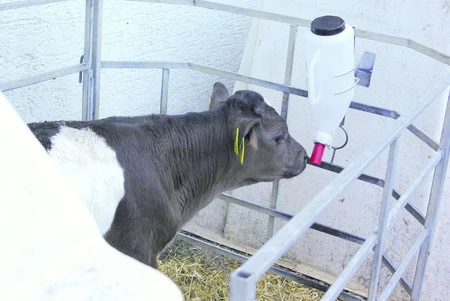 - Ułatwia organizację karmienia cieląt – bez konieczności trzymania butelki