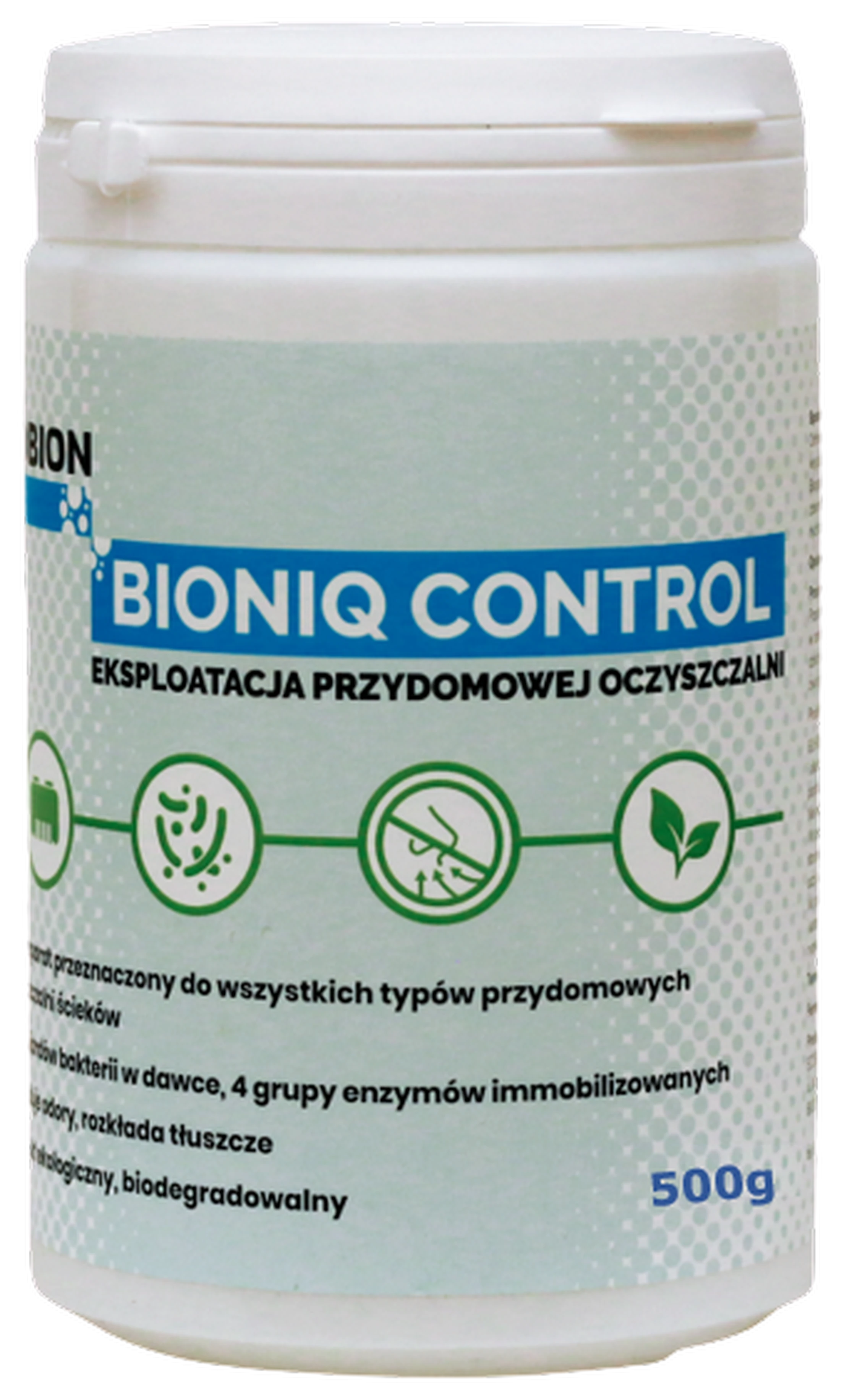 BioniQ Control ‒ profesjonalny produkt biotechnologiczny przeznaczony dla użytkowników wszystkich typów przydomowych oczyszczalni ścieków. Skład biopreparatu oparty jest na przemysłowych, niepatogennych szczepach bakteryjnych z rodzaju Bacillus, które charakteryzuje: