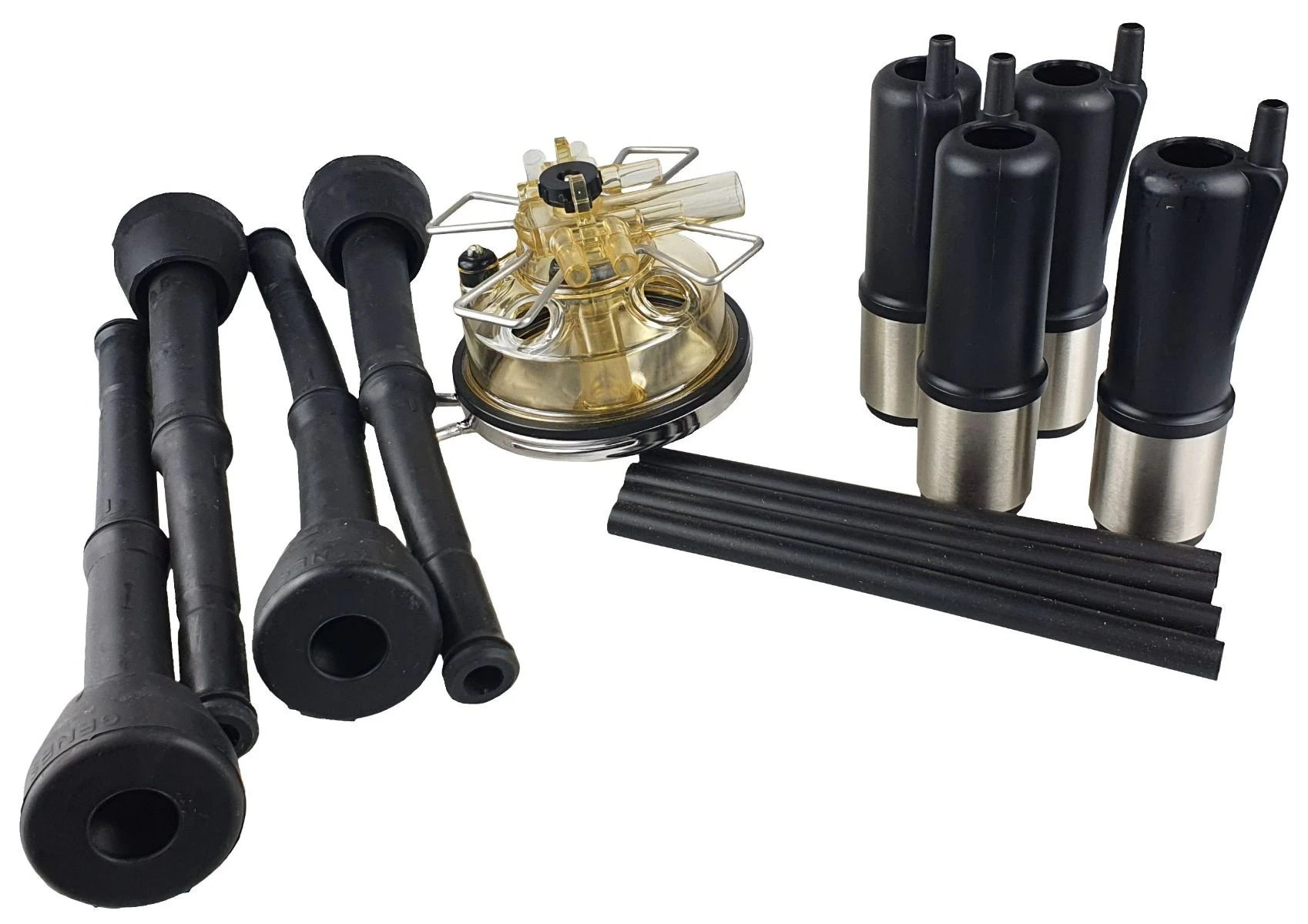 Kompletny aparat udojowy: kolektor 360 ml z wytrzymałego tworzywa, gumy strzykowe Harmony (typ DeLaval) oraz kubki z tworzywa i stali. Stabilna pulsacja, higiena i szybki montaż.