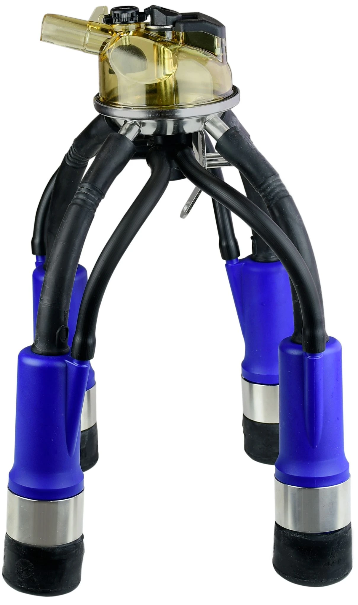 Kompletny aparat udojowy: kolektor 300 ml z wytrzymałego tworzywa, kubki z tworzywa i stali oraz trójkątne gumy IP10U. Precyzyjna pulsacja, lepsze przyleganie i wyższy komfort krowy.