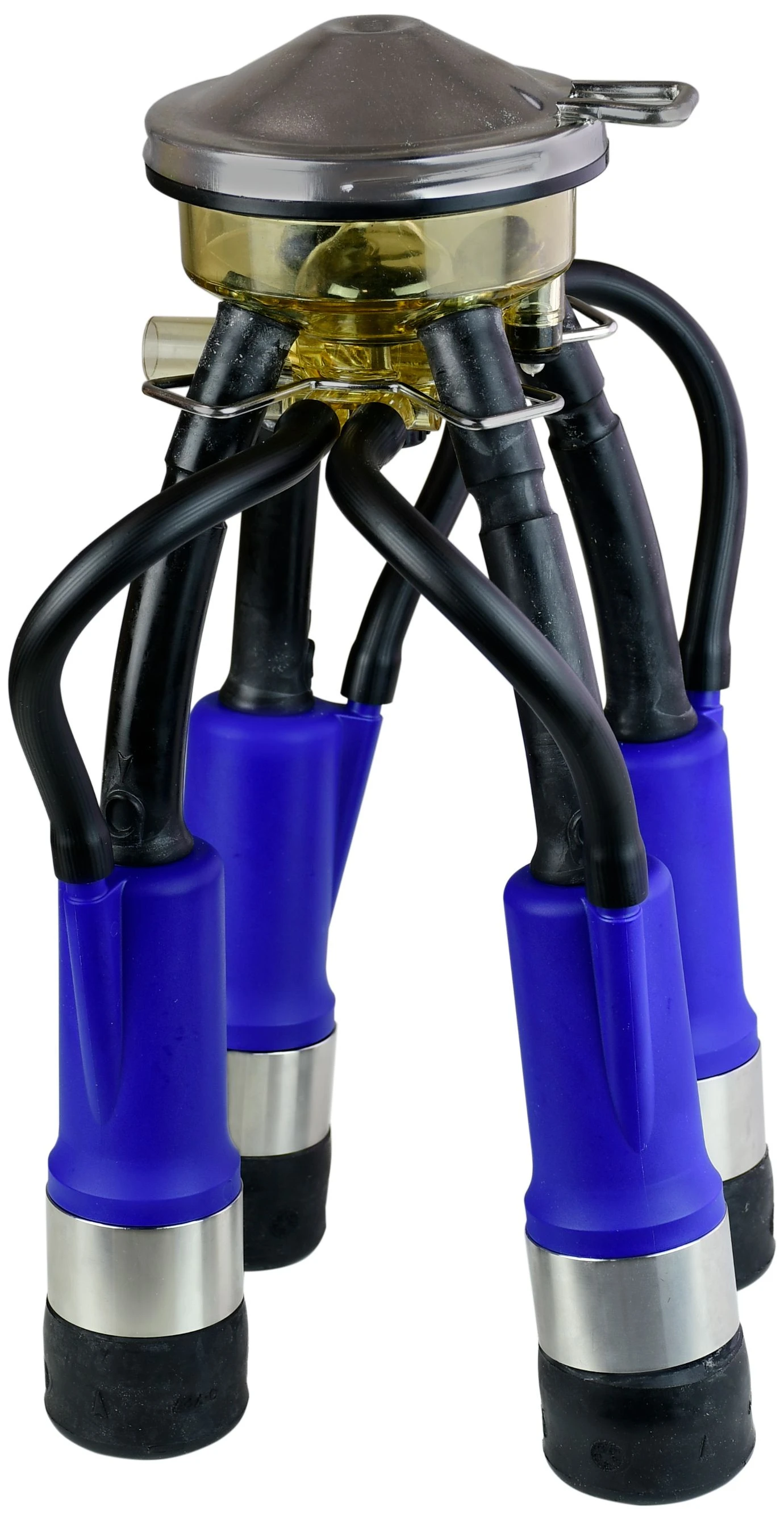Kompletny aparat udojowy: kolektor 360 ml z wytrzymałego tworzywa, kubki z tworzywa i stali oraz trójkątne gumy IP13U. Precyzyjna pulsacja, lepsze przyleganie i wyższy komfort krowy.