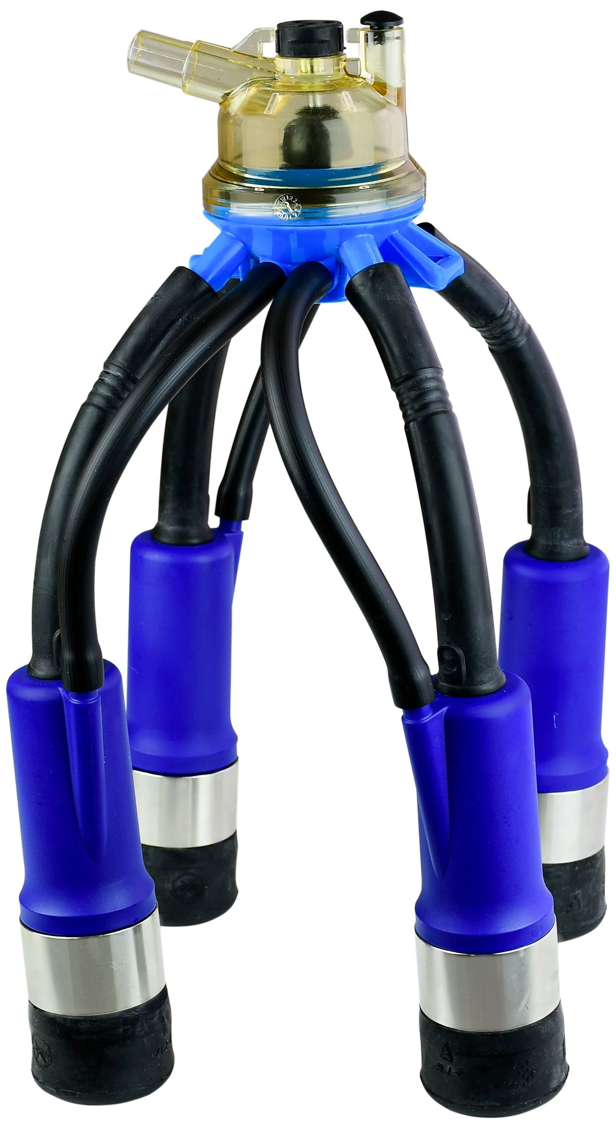 Aparat udojowy z kolektorem 300 ml i trójkątnymi gumami IP15U został zaprojektowany z myślą o precyzyjnej, delikatnej i higienicznej pracy. Trójkątne wnętrze kubka wraz z dopasowanymi gumami zmniejsza objętość powietrza pomiędzy wkładką a kubkiem, co przekłada się na szybszą i bardziej powtarzalną reakcję wkładki na pulsację.