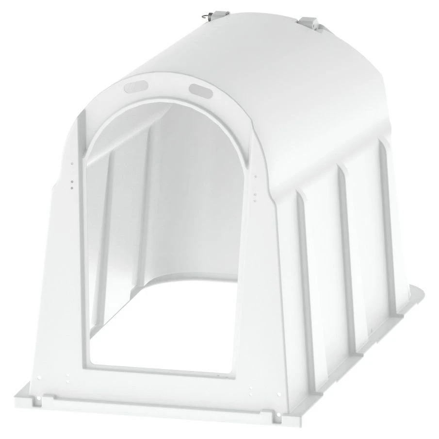 W ścianach oraz dachu budki zastosowano zaawansowany filtr UV+, który redukuje promieniowanie słoneczne przenikające do wnętrza. Dzięki temu w środku panuje niższa temperatura, co znacząco zwiększa komfort termiczny młodych zwierząt, zwłaszcza w upalne dni.