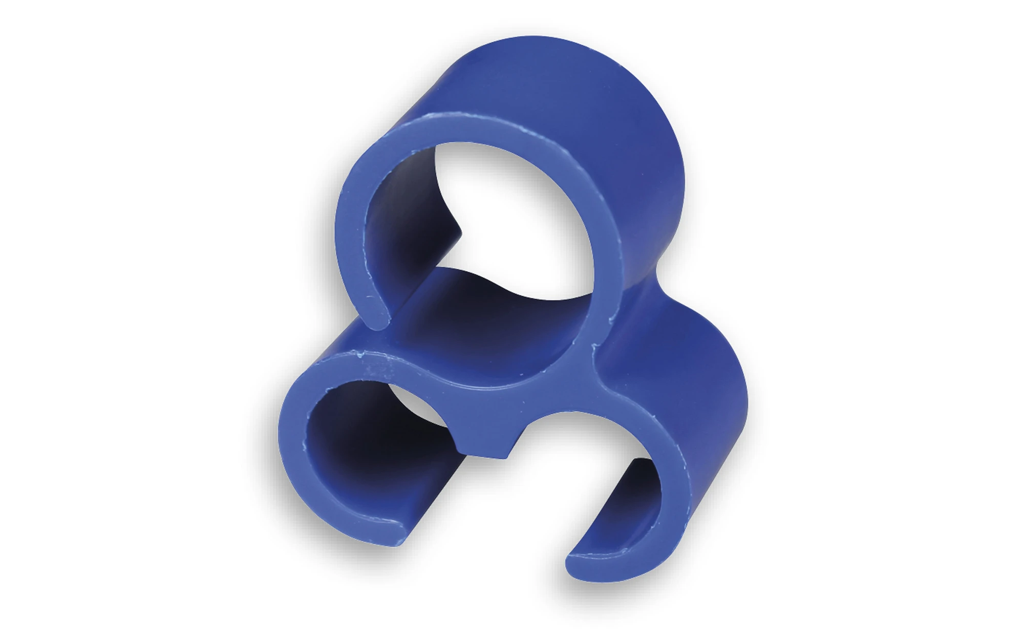 Potrójny Zacisk węży nr 01 marki AKROH pomaga natychmiast uporządkować instalację i zapobiegać plątaniu przewodów w hali udojowej. Jedno akcesorium prowadzi równolegle trzy linie — dwa węże Ø13 mm i jeden Ø20 mm — poprawiając bezpieczeństwo oraz ergonomię pracy.