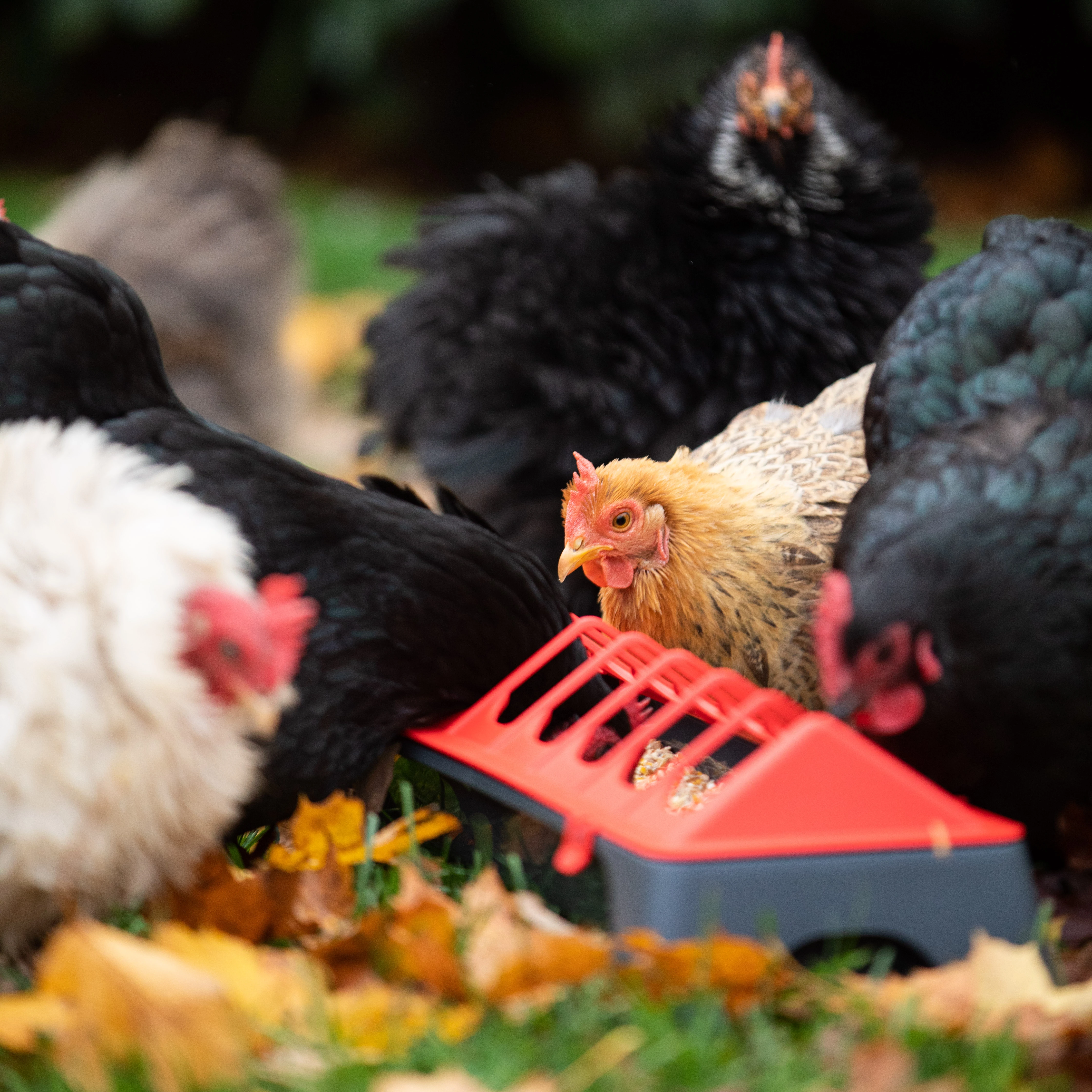 Wykonane z trwałego tworzywa w kolorystyce antracytowo-czerwonej. Odporne na warunki atmosferyczne i łatwe do utrzymania w czystości. Sprawdza się zarówno w hodowli przydomowej, jak i profesjonalnej.
