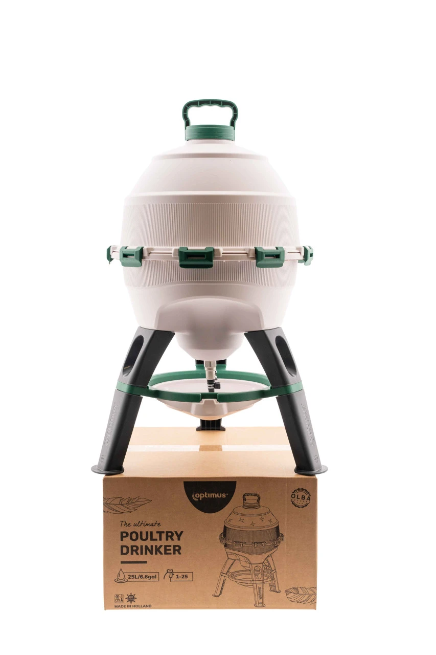 OPTIMUS 25L – innowacyjne poidło dla drobiu z mosiężnym zaworem, odporne na UV, z wymienną tacą. Łatwe napełnianie i czyszczenie. Idealne dla kur, kaczek i bażantów