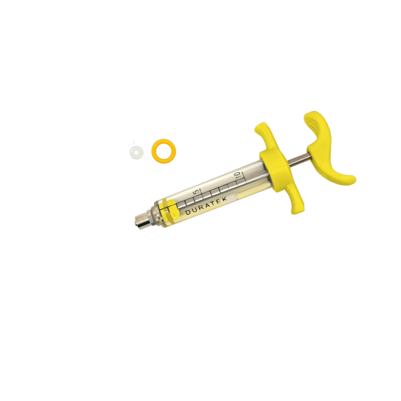 DURATEK: Niedroga i solidna linia strzykawek wielokrotnego użytku. Dostępny w 6 różnych rozmiarach: 10 ml, 20 ml, 30 ml, 30 ml kompaktowy (dla mniejszych dłoni), 50 ml i 100 ml. Nasza linia strzykawek Duratek wykonana jest z bardzo wytrzymałego japońskiego tworzywa sztucznego "TPX". TPX jest bardzo trwały i oferuje wiele cennych właściwości: krystaliczność, wysoki standard odporności chemicznej i termicznej. Dlatego sterylizację można przeprowadzić bez problemu przez gotowanie lub gotowanie na parze.