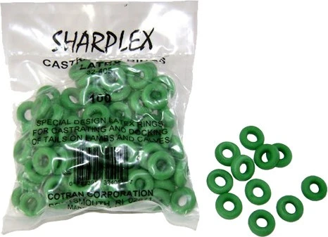Standardowe lateksowe pierścienie kastracyjne. Dostępny w kolorze pomarańczowym lub zielonym. Do stosowania z szczypcami kastratora taśmowego do kastracji lub obcinania ogona.