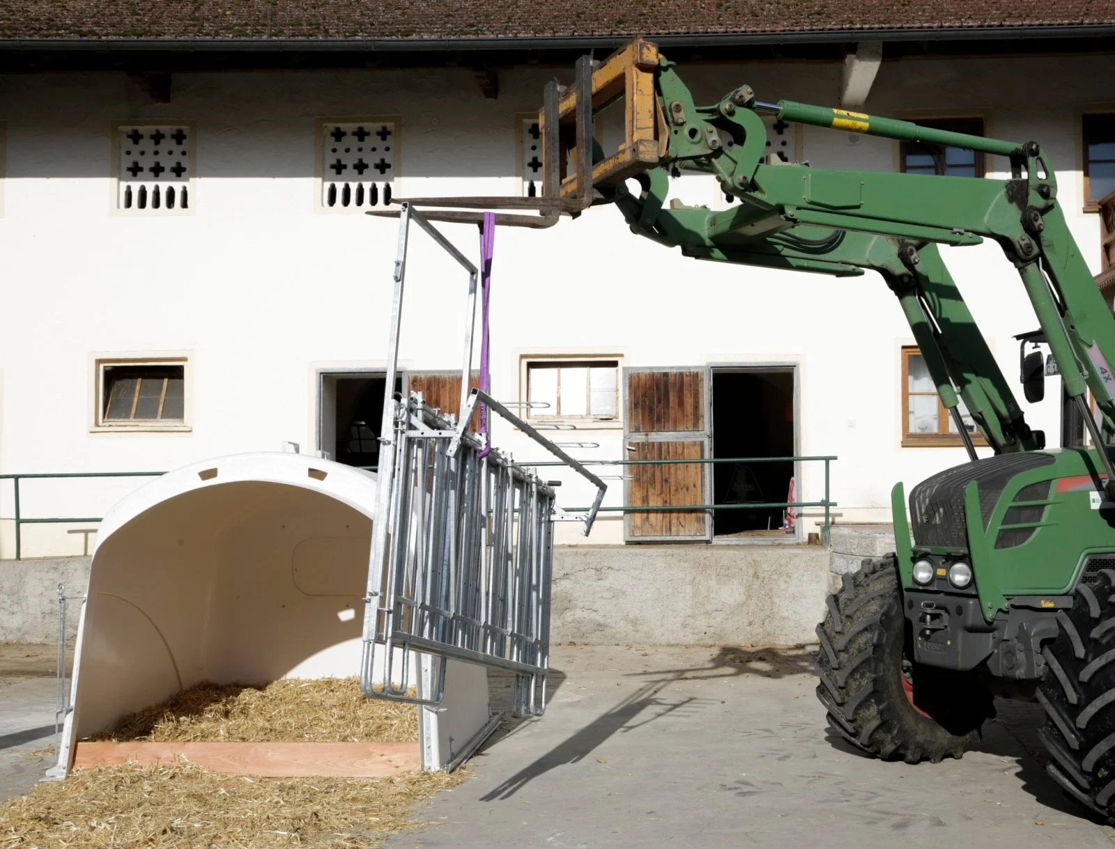 Konstrukcja została wykonana z włókna szklanego wzmacnianego tworzywem sztucznym, co przekłada się na długowieczność i odporność na trudne warunki pogodowe. Ochrona przed deszczem, wiatrem i nadmiernym nasłonecznieniem to gwarancja dobrostanu cieląt przez cały rok.