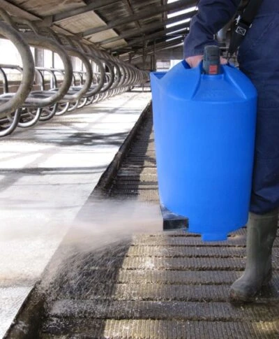Zestaw nie wymaga dostępu do prądu, jest mobilny i skuteczny nawet na dużych powierzchniach. Doskonały do codziennej dezynfekcji kurników, obór, chlewni czy magazynów paszowych.