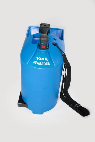 - Napełnij zbiornik rozsiewacza VINK suchym preparatem (wapno, proszek dezynfekcyjny itp.).