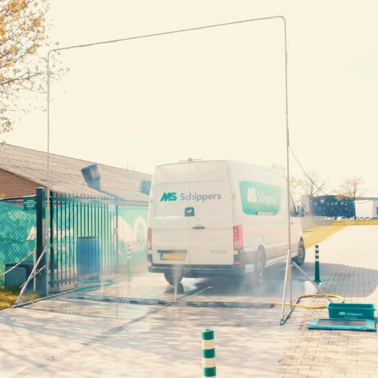 MS Bramka dezynfekcyjna 3.0 MS Schippers – kompletny zestaw do dezynfekcji pojazdów na fermach. Stal nierdzewna, 230 V, zbiornik 200 L, 18 dysz, automatyczna aktywacja. SKU 2509443