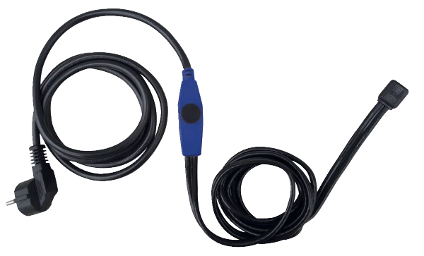 Zintegrowany termostat uruchamia kabel grzewczy automatycznie, gdy temperatura spadnie poniżej około 5 °C, oraz wyłącza go przy temperaturze około 13 °C. Eliminuje to konieczność ręcznej kontroli i ogranicza zużycie energii elektrycznej.
