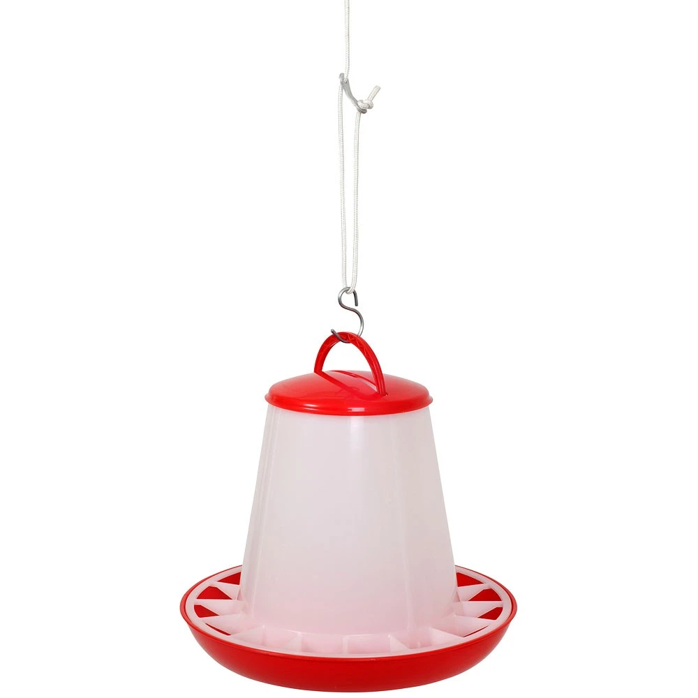 Karmnik o pojemności 3 kg z przezroczystym pojemnikiem, uchwytem i pokrywką. Stabilna, łatwa w czyszczeniu konstrukcja. Idealny dla kur, kaczek i indyków.