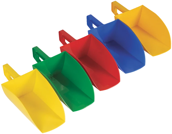 Szufelka do karmy 1 kg z trwałego tworzywa – dostępna w kolorach: niebieski, czerwony i żółty. Idealna do paszy, z opcją nadruku logo. Odporna i bezpieczna dla żywności.