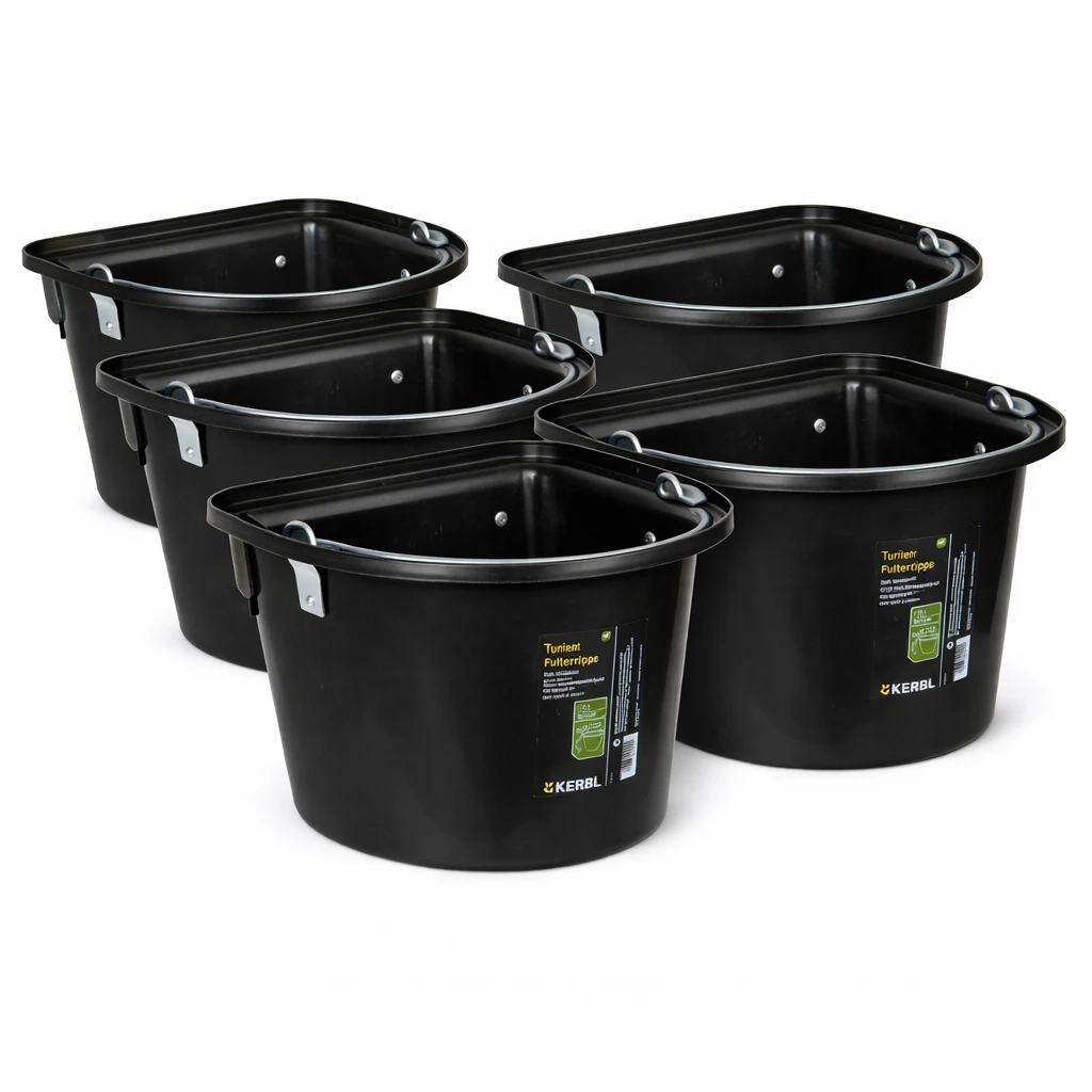 Karmidło na paszę z zawiesiem i pałąkiem, 12 l, czarne, kpl. 5 szt.