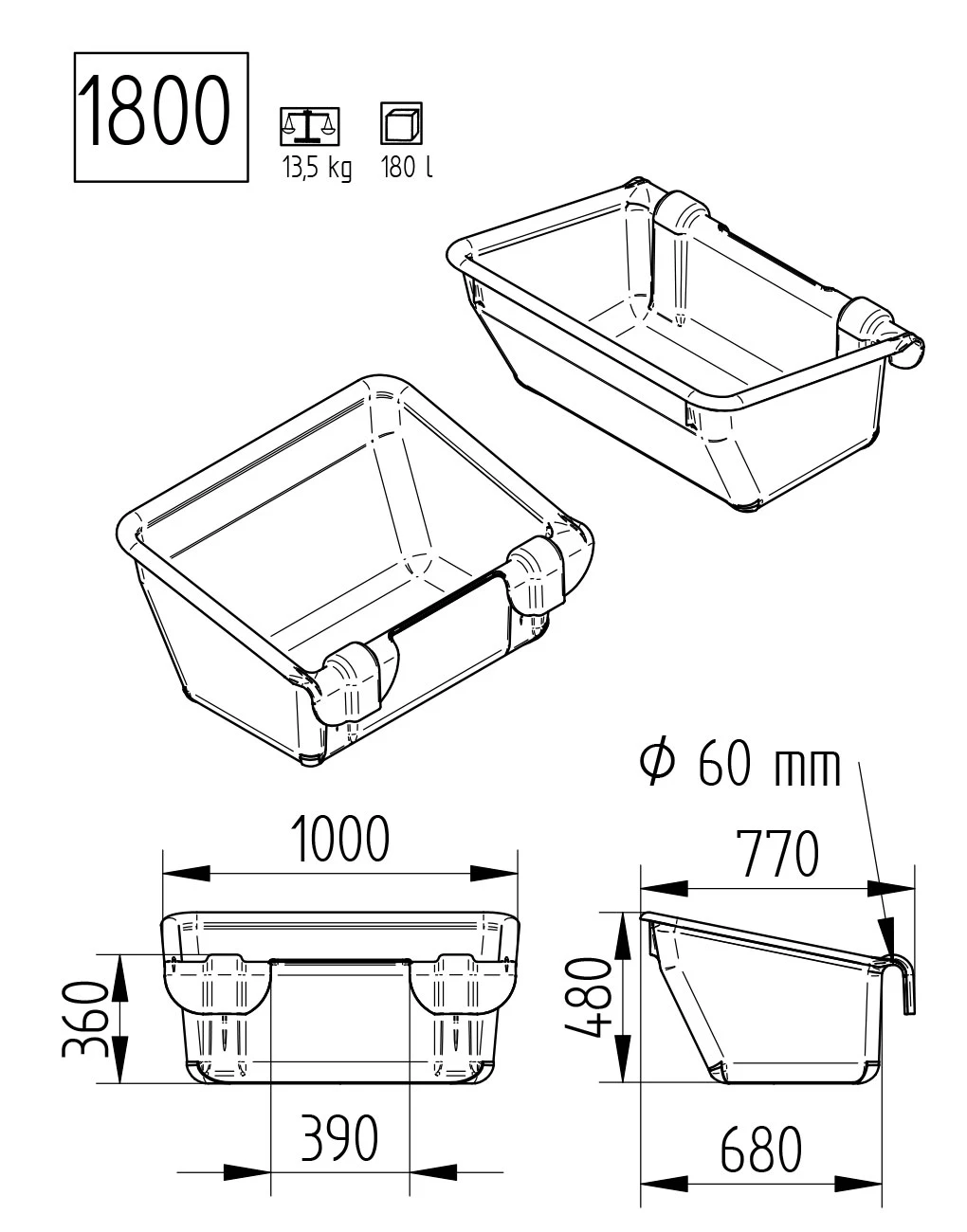 Koryto z zawiesiem 180 l