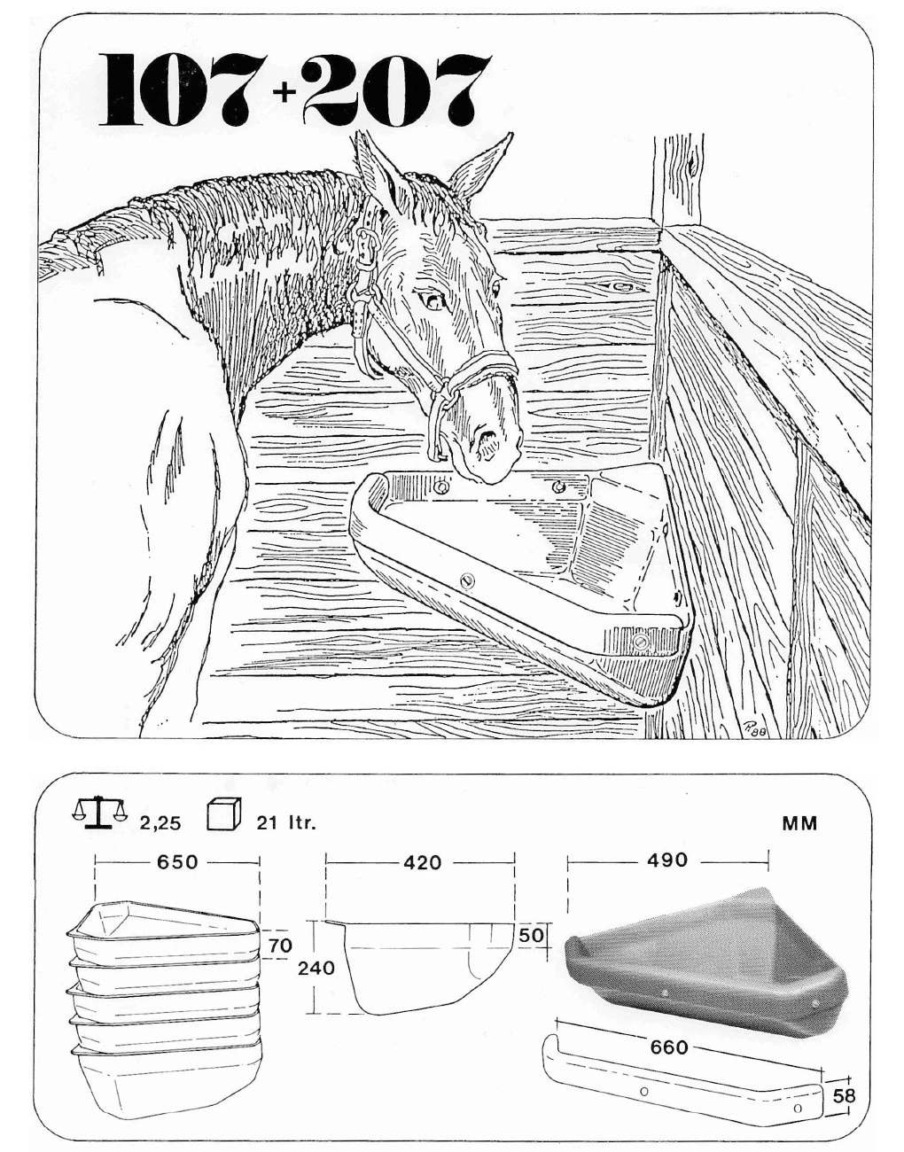 Karmidło pozwala na efektywne podawanie paszy przy ograniczonej powierzchni. Dzięki narożnej konstrukcji idealnie pasuje do wnętrza boksów, a trwałe tworzywo sztuczne zapewnia odporność na działanie warunków atmosferycznych i uszkodzenia mechaniczne. Jest lekkie, łatwe w przenoszeniu i bezpieczne dla zwierząt.