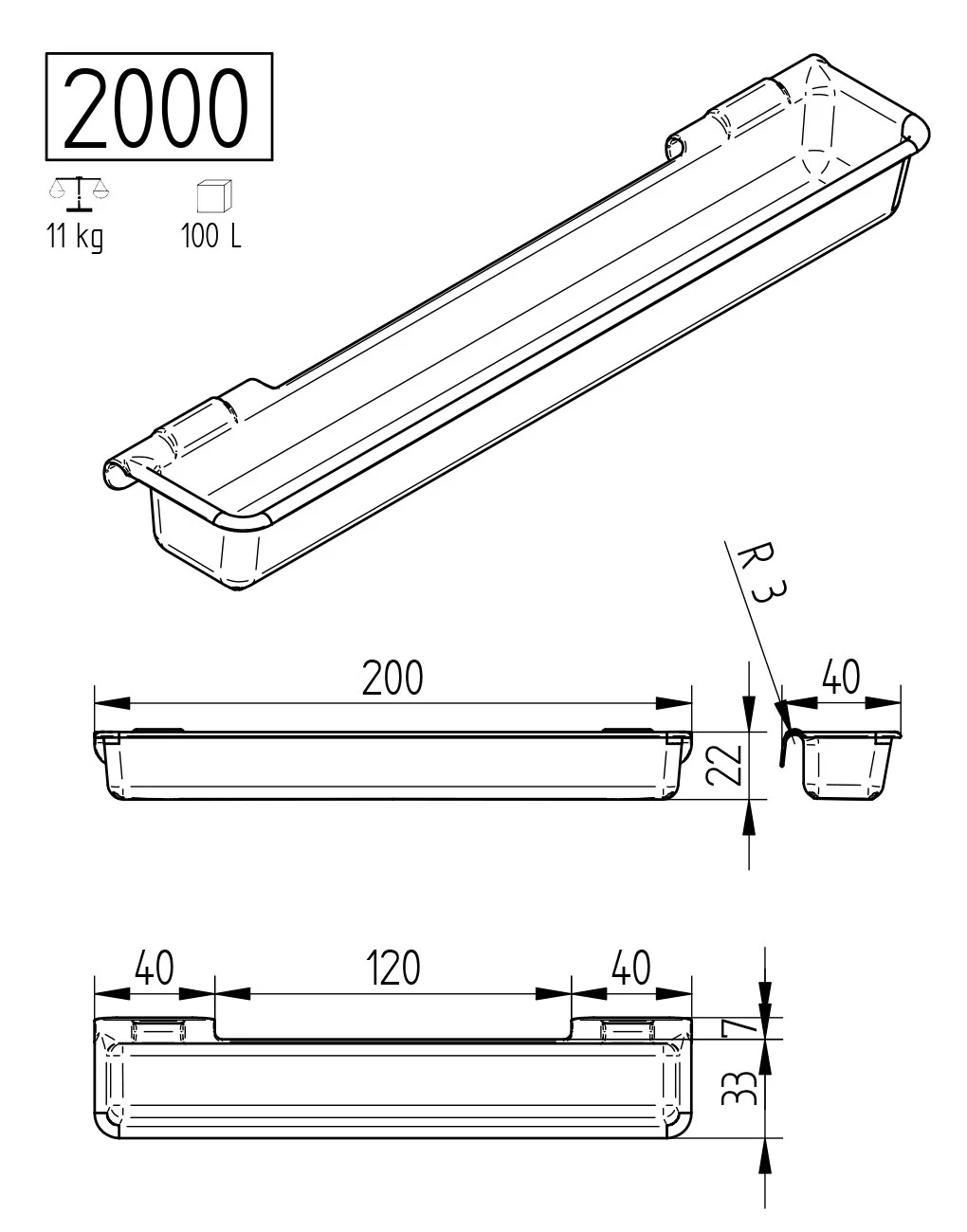 Koryto z zawiesiem dla cielat i owiec, 100 l, 200 cm